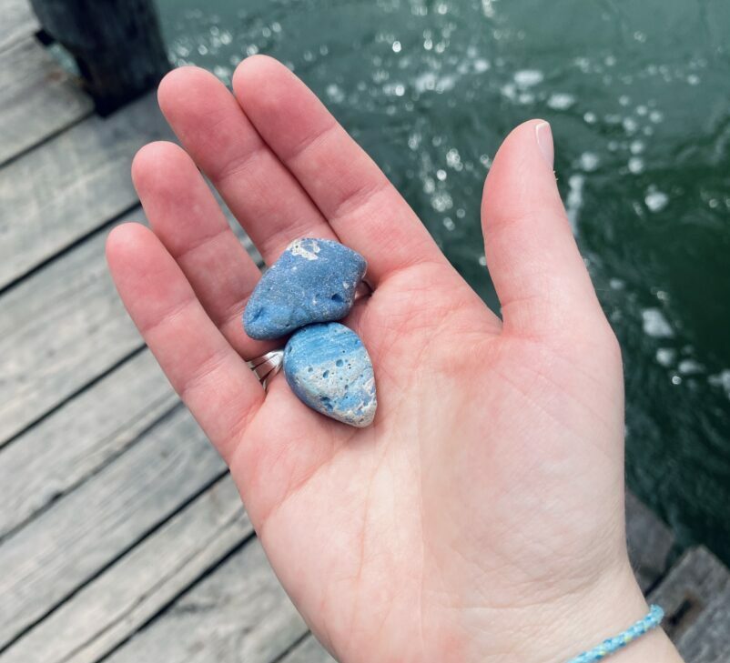 Locals and visitors alike comb the area beaches in the hopes of finding rocks in a striking shade of blue throughout all seasons of the year. The stones are found in various shapes and sizes, often pockmarked and full of crevices left behind from the cooling process. While blue shades are the most common, they can also be gray, green, and even purple. Fragments of history, Leland Blue Stones are a reminder of what the Leelanau landscape used to hold, and representative of the beauty that can surface with time.